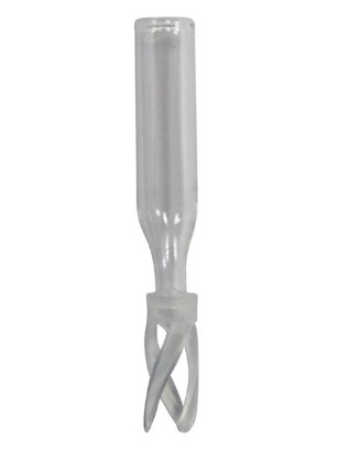 Trispring inserts have a plastic spring already attached, to center the insert and absorb shocks to minimize needle damage. 250 ul clear tapered-bottom TriSpring insert. Type 1 borosilicate glass, 6×29 mm. Fits 1.8 mL, 12×32 mm wide-mouth crimp or screw-top vials