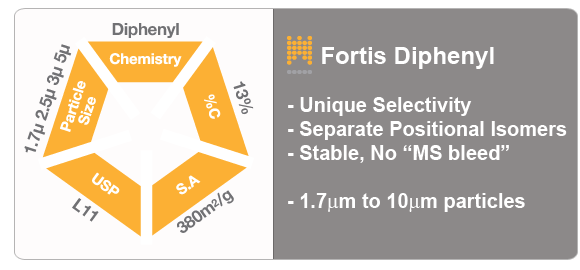 Fortis Diphenyl 100Å 3µm, 4.0 x 75mm, ea.