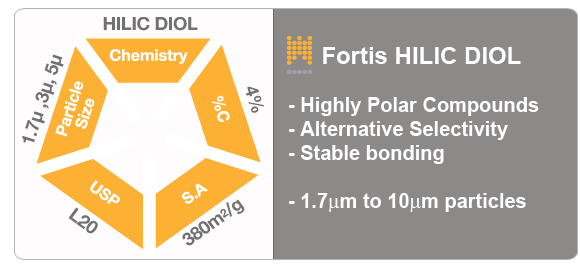Fortis HILIC DIOL 100Å 3µm, 4.6 x 50mm, ea.